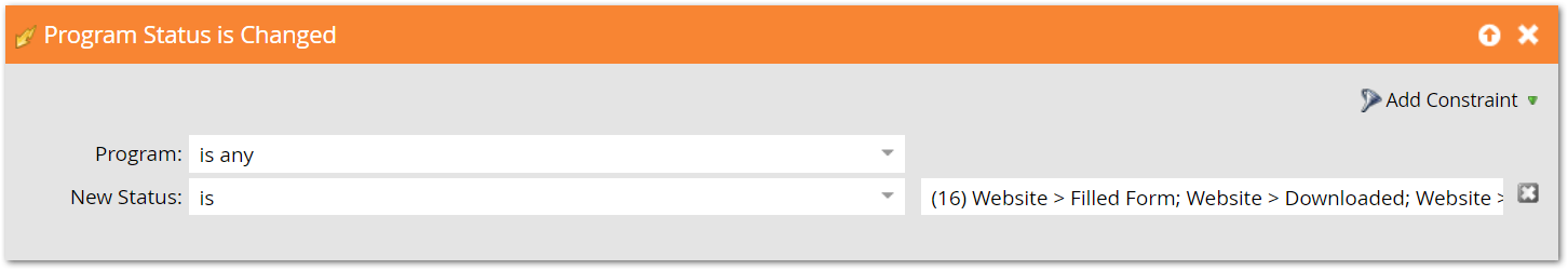 Instead, we wanted a single global campaign triggering on Program Status is Changed, Program [is any]: