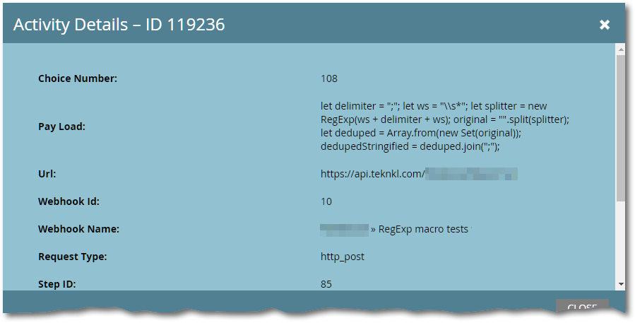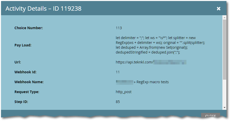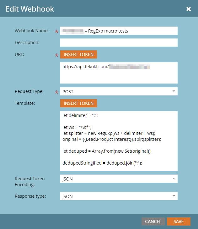 Say you want to pass a JavaScript regular expression literal to your webhook-compatible service: