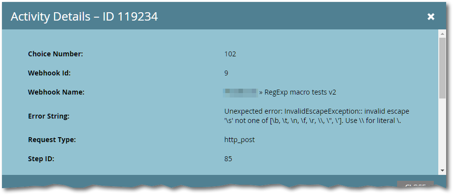 Let’s say I want the remote server to see a \\s (because within the remote service I need to escape). This won’t generate a hard error in Marketo, but it’s nevertheless broken: