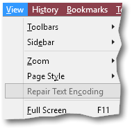 Firefox’s View menu gives you the rather oddly named Repair Text Encoding feature (which, even more oddly, appears to be greyed out even though it works):