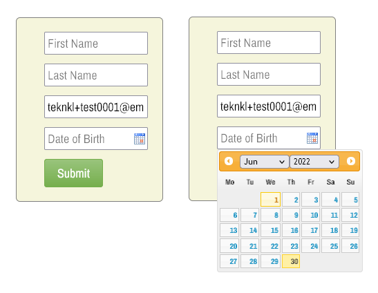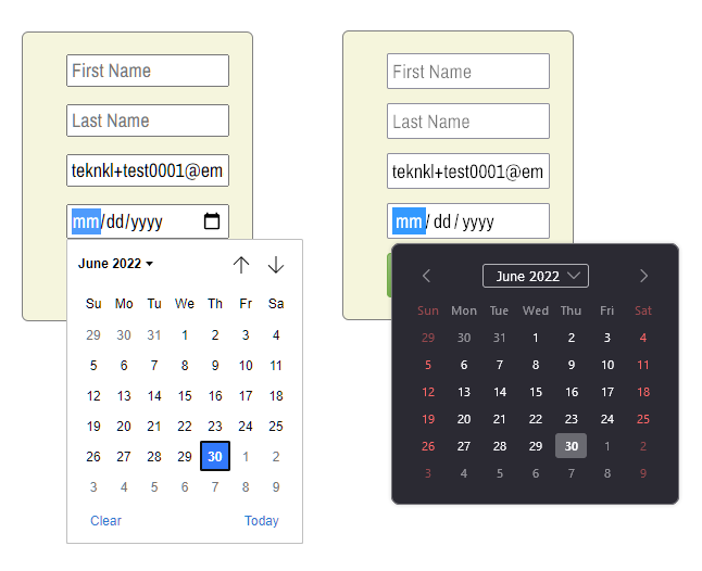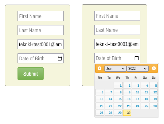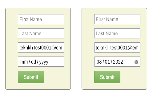 You may not have thought about it, but native HTML date fields — <input type="date"> — don’t support custom placeholder text. They either display a date pattern by default (left image) or a formatted date value (right image)[1]: