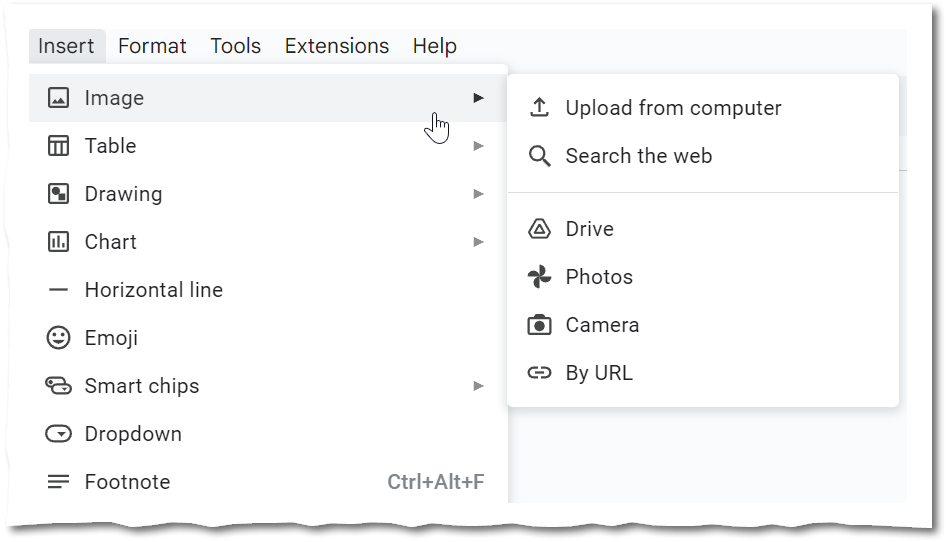 That’s right, all 6 options here for Insert » Image result in a local copy of the image:
