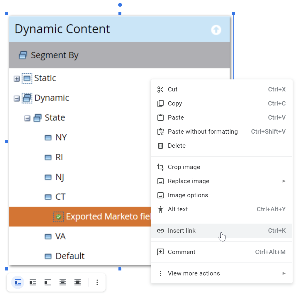 Here’s the key to making the code work. When you insert an image, also set its link to the image’s original URL. Here, I used Insert » By URL to grab the screenshot https://blog.teknkl.com/content/images/example.png. Then I click Insert link and set the same value https://blog.teknkl.com/content/images/example.png.[1]