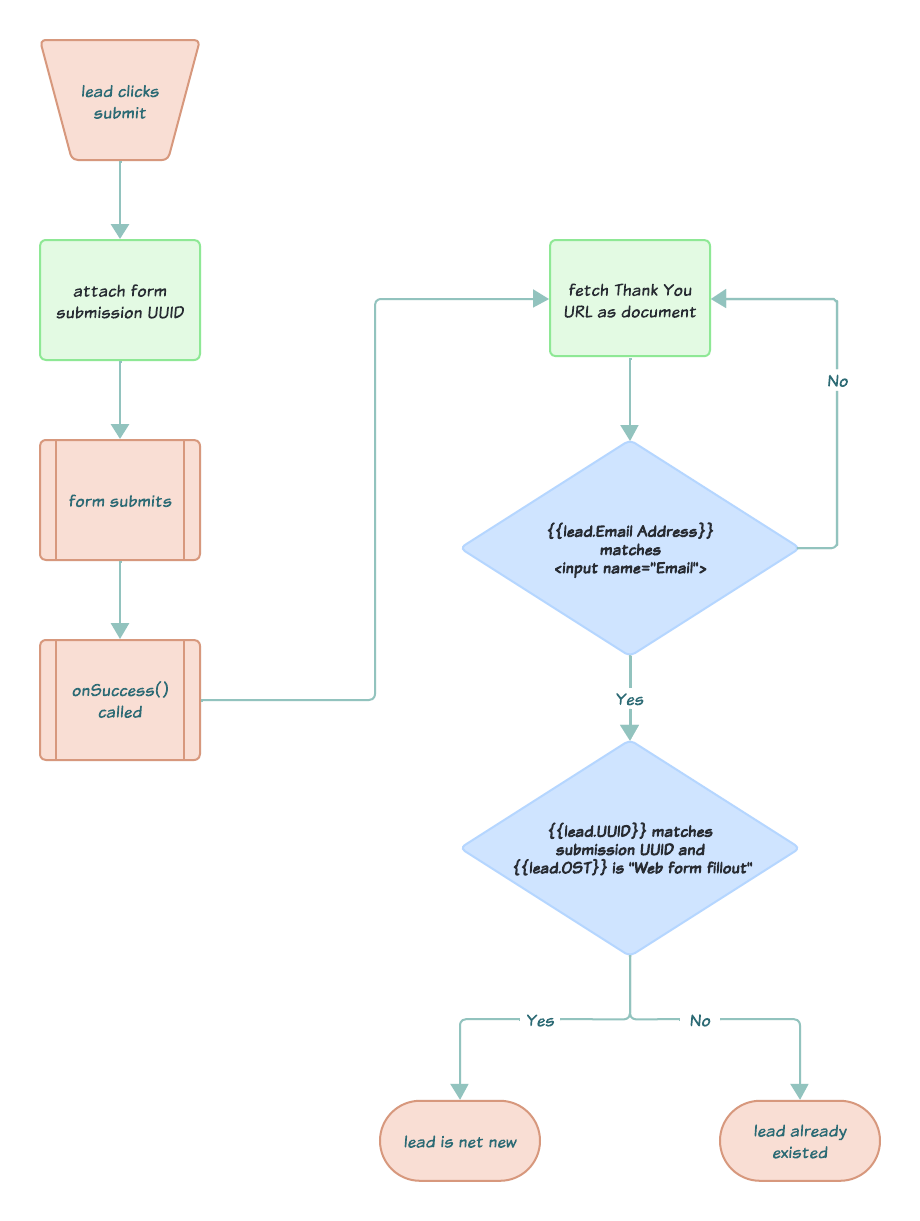 3. Polling the Thank You document under the hood until it’s associated with the submitting lead. Once it’s associated, check if this submit’s UUID was just set as the original UUID. If it was, presto! You know the person is net new.