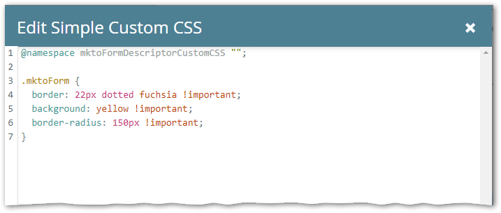 Those !importants will be maddening to override in an additional stylesheet, and there could of course be hundreds of different rules. It’s practically impossible to have full-featured Custom CSS stored in the form descriptor and also override it.