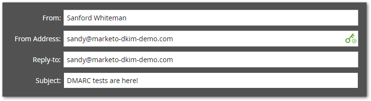"v=DMARC1; p=reject;"When you send an email with the headers above, Marketo signs the email using the DKIM key for marketo-dkim-demo.com (since it’s marked Verified).[2]