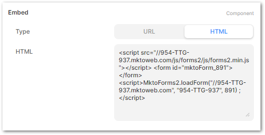 Pasting a standard Marketo Forms 2.0 embed code into the textarea looks fine in Framer’s Preview mode: