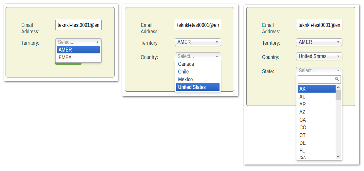 Here’s a native Marketo form with a series of Visibility Rules — I made sure to cover VRs, not just a basic config — where Territory and Country are perfectly usable, but State is characteristically out of control: