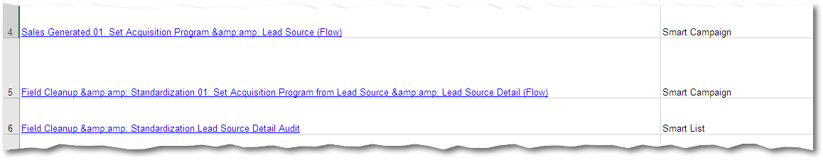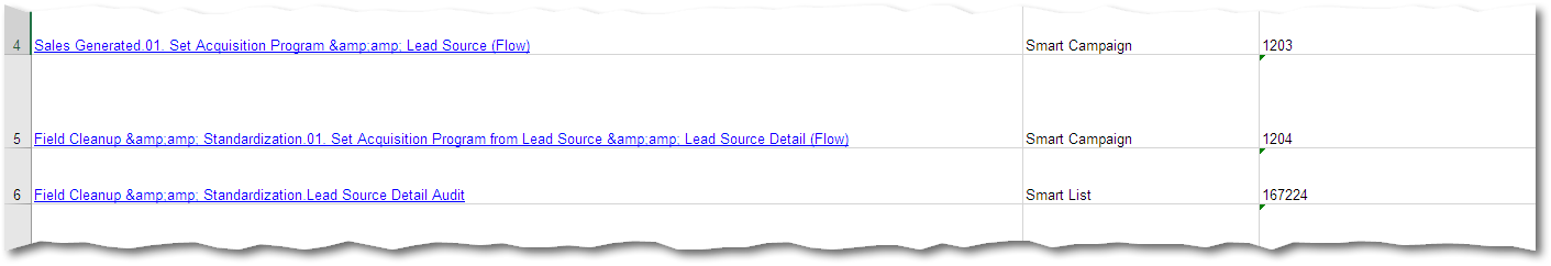 They include a hyperlink to each Smart Campaign/Smart List, but that only works when you click the link within Excel: