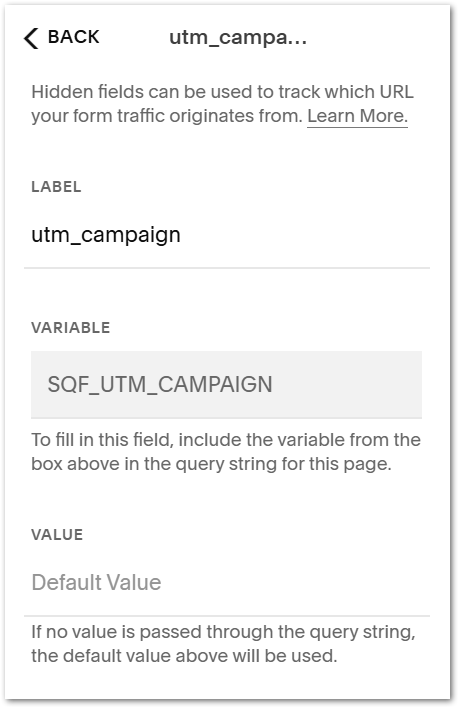 Not so with a Squarespace form. There, even if a field is called utm_campaign it’s impossible to fill it from the param utm_campaign. Unless you use the custom JS below, you can only fill from param names that start with SQF_ and are all caps. That’s crazy!