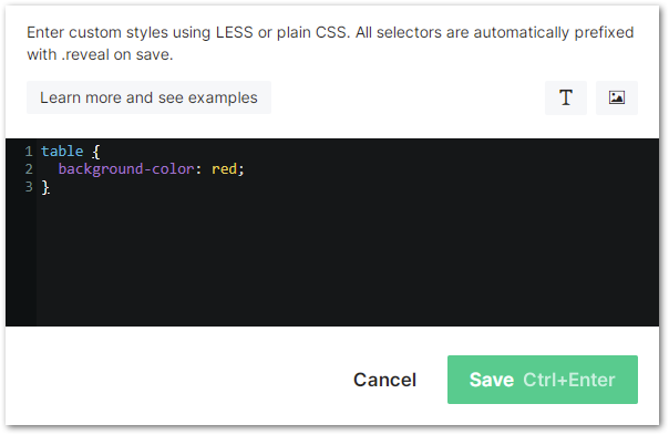 For example, here’s Slides.com’s Custom CSS box: