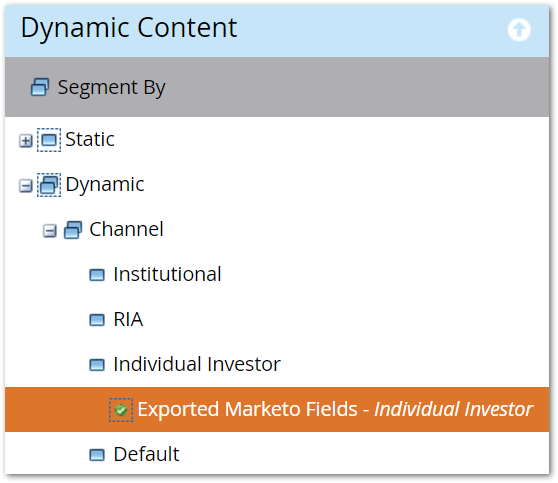 In LP Editor, right-click and make Exported Marketo Fields dynamic. In this example, we’re segmenting by the segmentation called Channel, which has three named segments plus the default segment.
