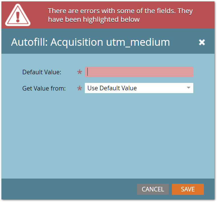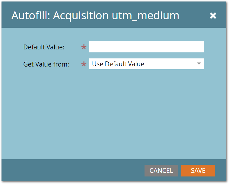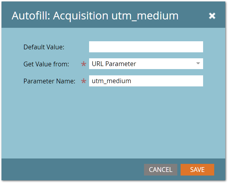 This next one is a hidden field set to Autofill from a query parameter named utm_medium, with no default value:
