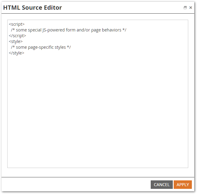 In theory, you’d fill that Page Behaviors JS & CSS container like so: