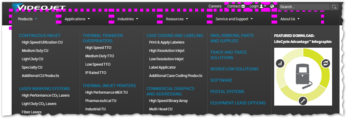 And when you click on a menu, that just drops down the associated sub-menu (and sub-menu links like High Speed TTO and Print and Apply Labelers are tracked):