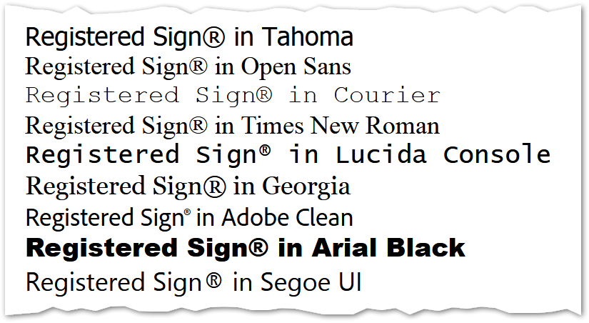 Which might still work in most fonts if the Registered Sign character were defined or suggested as a superscript character in the Unicode standard. But it’s not.