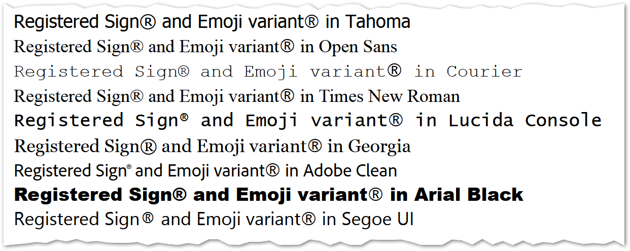 Clearly a mixed bag and you can’t expect a superscript ® across clients, devices, etc.