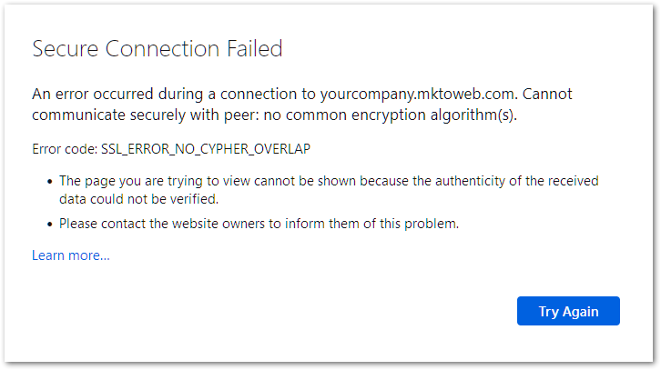 So while IT was superficially correct that https://yourcompany.mktoweb.com may generate this error —