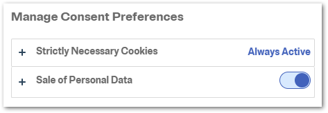 California’s CCPA and CCRA require opt-in to share or sell personal data, so make sure you offer that setting alongside your existing cookie options. If you happen to use OneTrust, here’s how that looks: