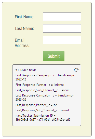 Whether your tracking logic uses standard UTMs, custom query params, or other dimensions, you’re gonna need hidden form fields.