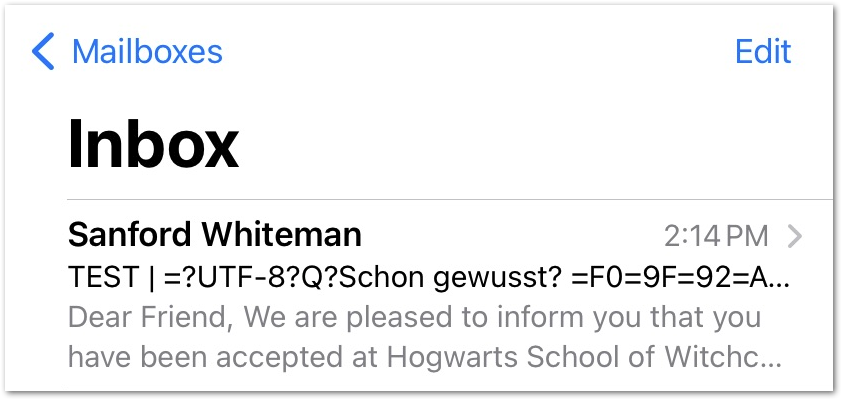 Apple is absolutely correct that it’s bad Q-encoding, and they’re right to break the display. Other mail clients are more forgiving, but you should always build to the strictest standard and don’t rely on clients being looser.