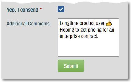 "comments__c" : "Longtime product user.\ud83d\udc4d\nHoping to get pricing for an enterprise contract."