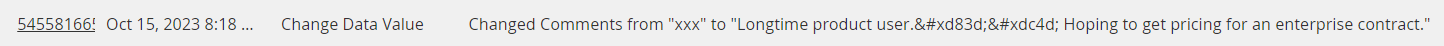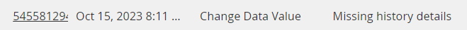 }The only evidence that something went weird is the Change Data Value, which has “Missing history details”.[1] Presumably that’s because the requested value and actual value differ, so logging of the new/old value goes haywire:
