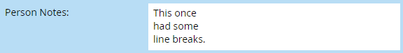 This once had some line breaks.That’s it, you can’t reverse it to the actual database value. And that’s the, uh, breaks. Because it means you can’t ever format it in an email as originally intended.