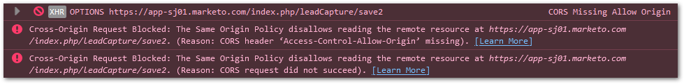 (Of course, it’s not that one can’t in general prepare CORS headers and expectations for this kind of setup, but that’s not the way Marketo’s form infrastructure works. It expects same-origin posts.)