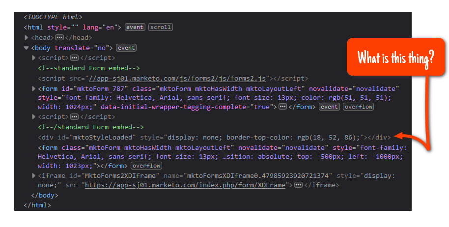 Ever wonder about the hidden <div> with id mktoStyleLoaded that gets injected by the Forms 2.0 library? Y’know, this one: