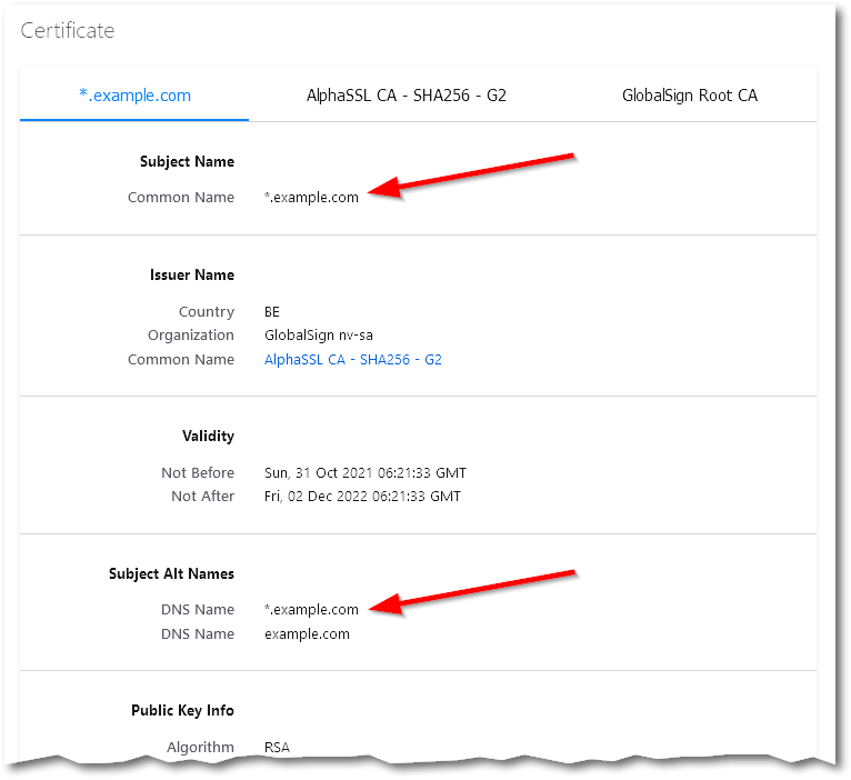 And that wildcard cert will handle connections to with_an_underscore.example.com without a problem. Assuming with_an_underscore.example.com is a DNS CNAME (not A) record, that setup is standards-compliant on both fronts. It’ll be screwed up in IE — but it’s otherwise legal and functional.