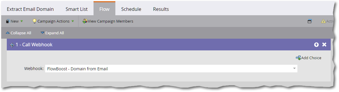 Note: I purposely don’t check if Email Address was empty, since when it changes to empty, you want to empty out Email Domain, too. (If you really wanted to conserve FlowBoost calls, you could cover that particular case with Add Choice and Change Data Value, but that’s more complicated.)