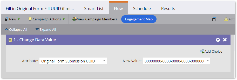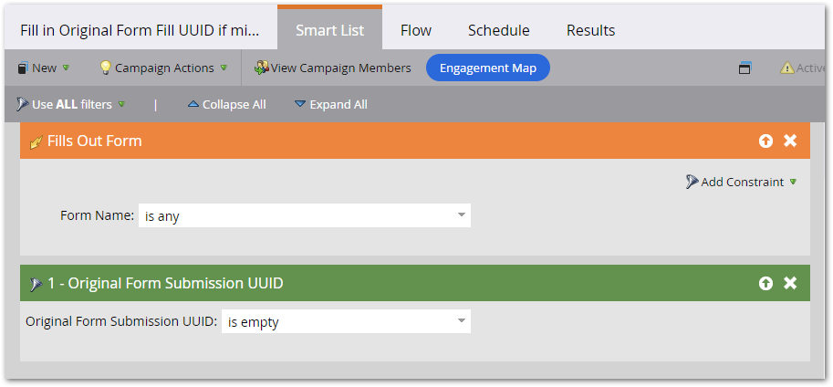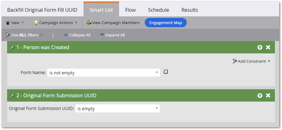 The campaign below captures all “unmanaged” form submissions, where the JS above isn’t running, and sets the standard empty UUID value: